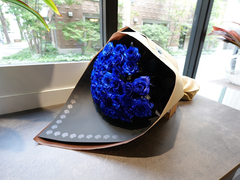 カラーリングした青バラ40本
