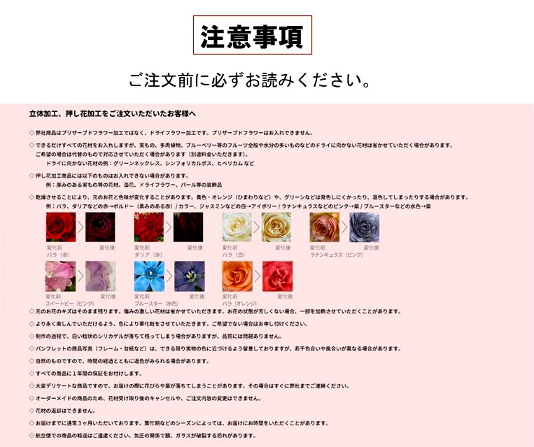 - 画像のお花はサンプルです。お客様からお届けいただいたお花で、オーダーメイドで制作致します。